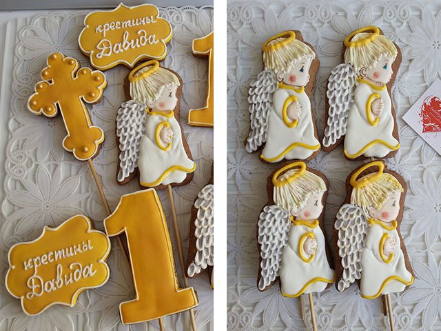 - Au four biscuits de pain d'épicedécoré de sucre glace sous la forme de symboles orthodoxes.