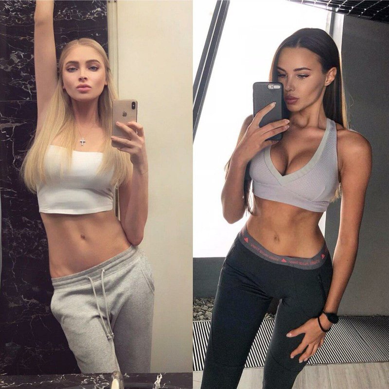 Alena es una rubia con ojos azules y piernas excesivamente delgadas. Nastya es una morena brillante con formas deliciosas.
