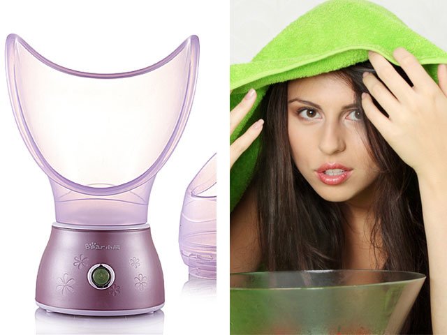 - Passez votre peau à la vapeur sur un bain de vapeur (maintenez votre visage pendant environ 5 minutes au-dessus d'une casserole d'eau bouillante, en le recouvrant d'une serviette).