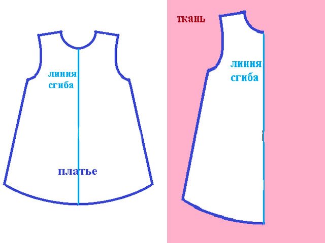 3. Avant de couper la même robe en tissu, vous devez mesurer si elle convient à l’enfant. Pour cela vous avez besoin lignes de mesure A et B. (Voir photo ci-dessous)