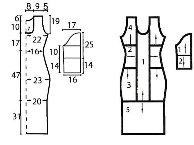 La chose la plus importante lorsque vous cousez une telle chose est choisissez la bonne couleur ou le bon motif pour le tissu. Cela peut être fait accent sur la taille, ce qui est très important pour de tels modèles. Il est nécessaire de prendre toutes les mesures correctement: tour de poitrine, taille hanches et ainsi de suite, selon le style que vous choisissez. Pour simplifier le travail, utilisez motif ci-dessous.