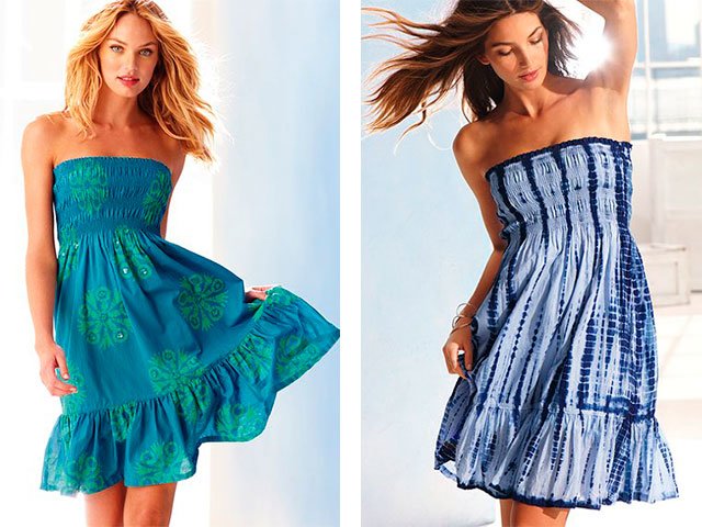 Cette robe est très appropriée pour un look de plage. Et plus important encore - son très facile à coudre de vos propres mains. Super pour lui le coton ou lin. Nous découpons des pièces identiques au dos et à l'avant du tissu sélectionné. Pliez-les et griffonnez les coutures latérales. Devrait être noté endroits pour coudre de la gomme dans le produit. Pour ce faire, attachez simplement une robe à vous-même. Bandes élastiques coupées à la même taille: Saisissez-vous avec un élastique pour vous mettre à l'aise. Nous cousons les bandes élastiques et les plaçons uniformément sur le produit, nous les cousons. Vous pouvez également faire un volant, si nécessaire.