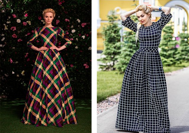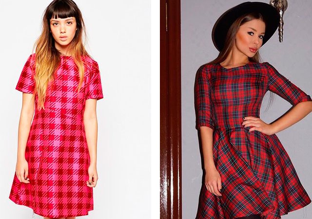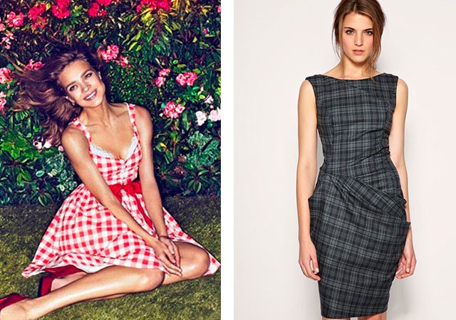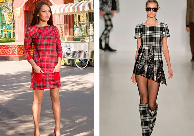 Cet été, il sera à la mode de porter non seulement une cage noire et blanche, mais aussi du rouge et du jaune. Habituellement, pour les promenades estivales, le tricot est préférable et il est préférable de choisir une robe en laine à carreaux d'hiver.