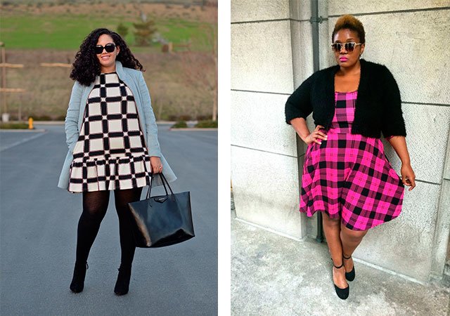 Une tenue à carreaux noirs sera toujours à la mode. Cette combinaison cachera la plénitude et donnera de l'harmonie, elle aura l'air féminine au travail et à la soirée d'entreprise.