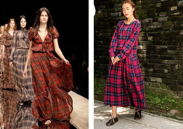 Les décorations de maxi, midi et mini sont pertinentes cette saison. Les podiums ont fait sauter une cage à carreaux en combinaison avec des accents de cuir et de la dentelle. Ils distinguent généralement une manche trois-quarts, un col et un ourlet de jupe.