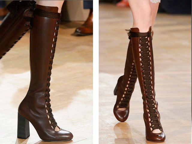 - Modèles de laçage également très populaire cet automne et cet hiver. Ils décrivent la ligne verticale et rendent les jambes visuellement plus minces.