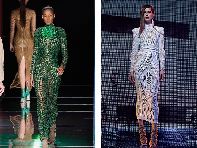 Selon de nombreuses photos de défilés de mode, le retour de la mode des années 80 avec abstraction, motifs géométriques et chaotiques faciles à crocheter est remarqué.