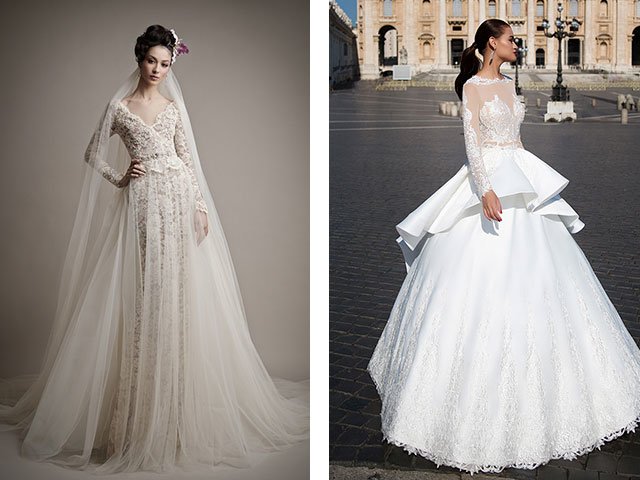Les fourrures vous aideront à décorer n'importe quel modèle ouvert, mais il est préférable de faire attention aux idées à manches longues. Décor avec des perles de perles naturelles, broderie sur cordon, fleurs appliques - toutes ces idées que vous trouverez sur la photo. N'oubliez pas la règle d'or de cette saison des mariages - n'en faites pas trop avec de la fourrure. Tout devrait être avec modération.