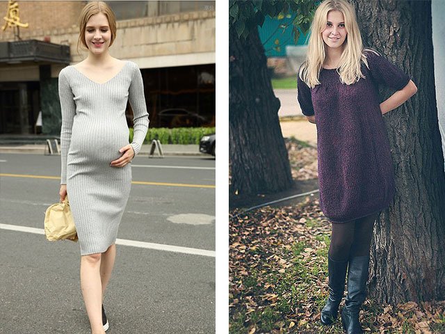 Dans tous les vêtements, il y a un centre de composition, et dans le cas des femmes enceintes, le ventre est arrondi. Par conséquent, les styles de robes d'hiver sont presque toujours simples avec une finition légère et délicate. Les modèles longs ou les idées à taille haute qui peuvent être portés après l'accouchement sont également intéressants.