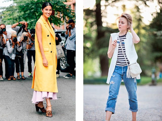 Il existe de nombreuses options pour le porter. Vous pouvez le combiner en bleu avec une chemise à rayures, un jean boyfriend et des baskets. Si vous avez choisi la couleur jaune de la veste, mettez audacieusement tout le blanc en dessous!