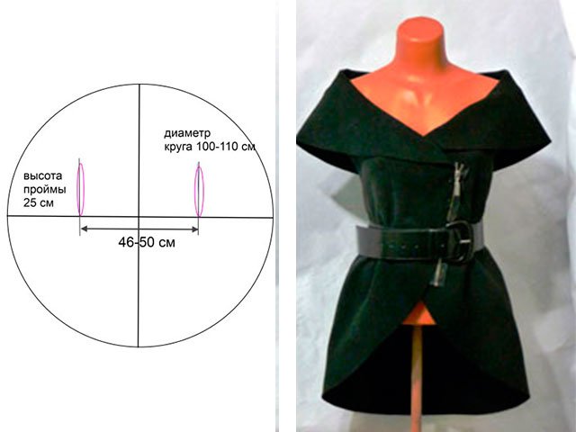 Comme base pour le motif, prenez un cercle dont le diamètre doit être légèrement plus grand que la circonférence de vos hanches. Si le diamètre est de 89 cm, par exemple, le diamètre sera de 92 cm. Conseil: si vous cousez pour la première fois avec un tissu coûteux, retirez d’abord le gilet du tissu inutile et essayez-le. Si tout vous convient, n'hésitez pas à coudre!