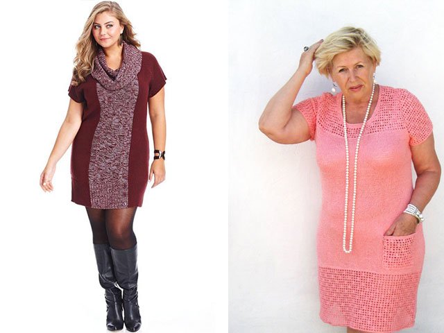 Des robes tricotées pour le plein peuvent être créées avec des aiguilles à tricoter et au crochet. L'essentiel est de choisir le bon fil et un beau motif qui atténuera les défauts et de se concentrer sur le fond. Les dessins dans ce mode de réalisation sont préférables pour sélectionner de belles longitudinales. La longueur des produits est généralement choisie au maximum, surtout si le modèle est choisi - une robe d'été (modèles d'été ou chaud). Mais les tuniques sont assez harmonieuses pour les femmes à part entière. Il est préférable de desserrer la manche, parfait, par exemple, raglan. Ces recommandations sont également pertinentes pour les femmes enceintes.