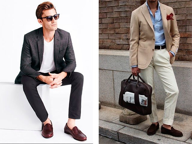 Les mocassins pour hommes très stylés se porteront avec un jean à torsades et un polo ajusté. Il est recommandé de choisir des couleurs sombres ou blanches dans les vêtements. Des souliers de vin ou des nuances brunâtres s'harmonisent bien avec une telle palette.