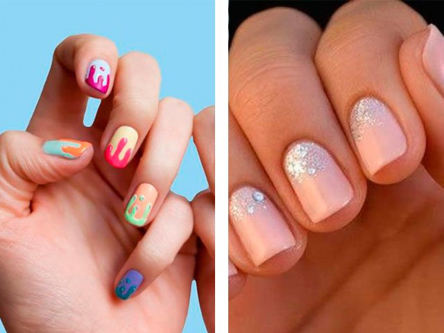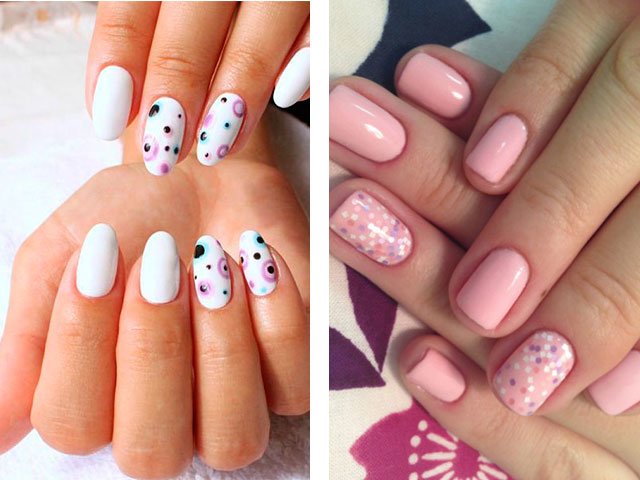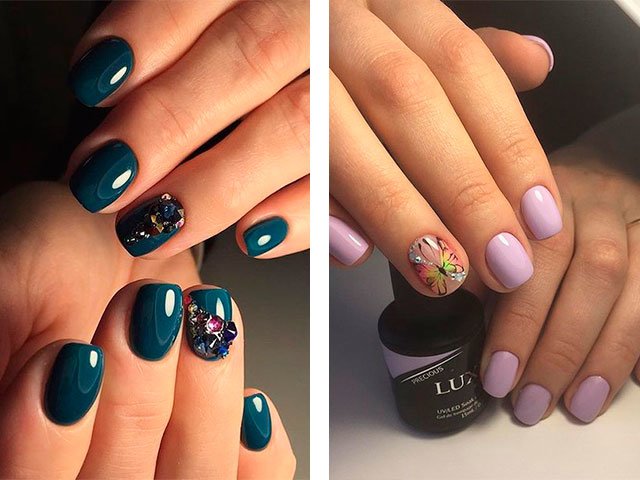 De nos jours, il est à la mode de peindre des ongles d’une seule couleur ou d’appliquer un motif léger à l’aide d’un gel lustrant. La tendance est aux paillettes, à la toile d’araignée, aux étincelles, aux autocollants, aux rayures, aux triangles et aux points.