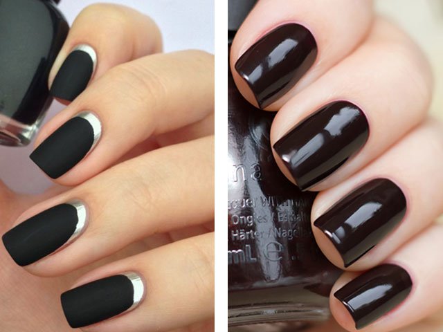 Style gothique. Convient aux jeunes filles avec une image dramatique. Il est noir, aubergine, marron, vert ou prune. Pour donner aux ongles un charme particulier, les stylistes proposent d’ajouter un motif en or ou en argent à une telle manucure (voir photo).