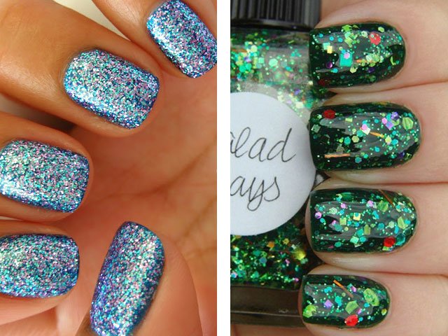 Paillettes solides. Si vous voulez un peu de chic et de brillance, essayez de faire une manucure à la mode avec de faux strass ou une feuille brillante. De là, vous pouvez facilement découper des figures et donner du lustre à la plus modeste nuance de vernis à ongles.