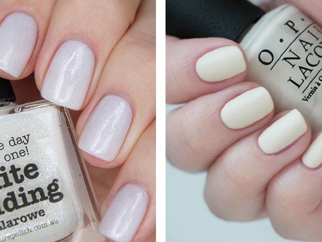 Tous les tons et nuances de blanc. De la perle à la matte. Des ongles avec une telle manucure rendront la fille raffinée et aérée. Vous pouvez également expérimenter des débordements de tons blancs et une texture crémeuse de vernis à ongles.