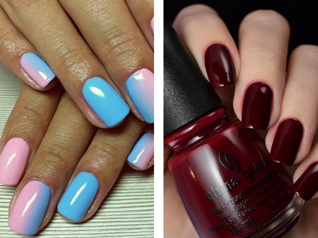 Les tons crème, gris clair et vert seront également populaires. Le ton universel du vernis à ongles, les concepteurs ont choisi la couleur à la mode du vin rouge foncé, qui convient à merveille à tout vêtement et à toute image (la photo des blogueuses de mode le confirme).