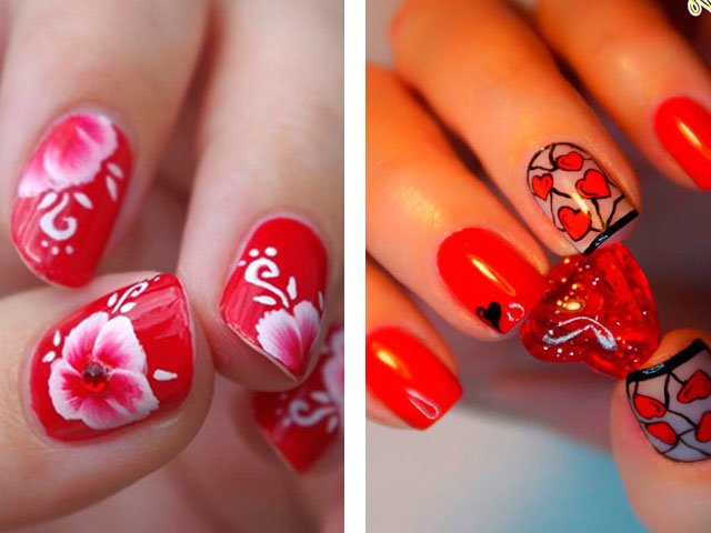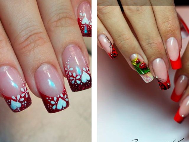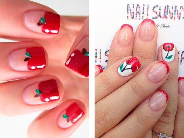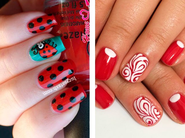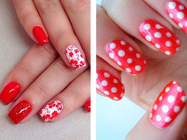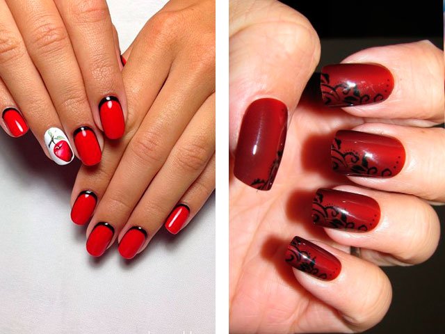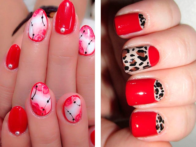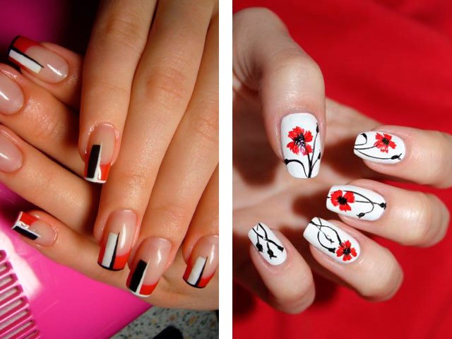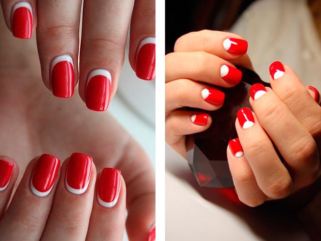 Dans leur combinaison, ces nuances sont absolument uniques. Vous pouvez créer un design délicat en ajoutant seulement quelques rayures blanches, des taches ou des fleurs. Le blanc peut également être utilisé comme couleur principale, mais c'est la base brillante qui crée l'effet le plus important. Beaucoup de maîtres se contentent de peindre tous leurs ongles en écarlate, en ne tirant que sur l'annulaire.