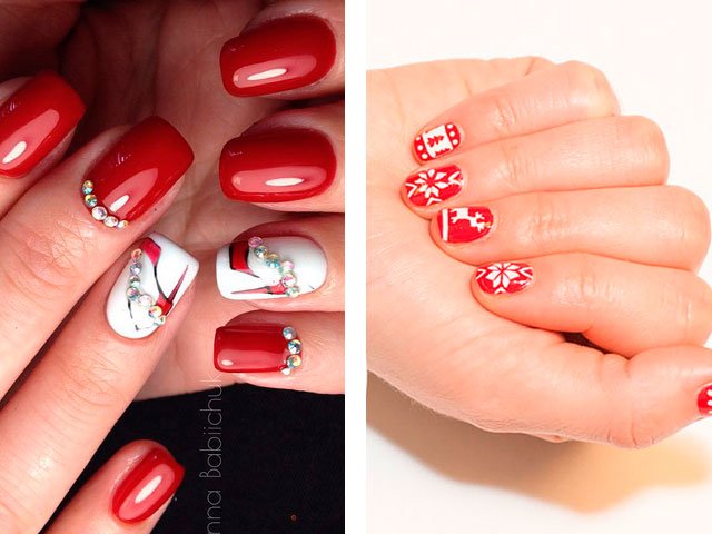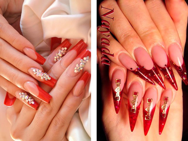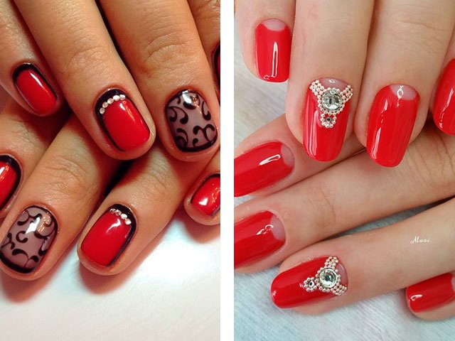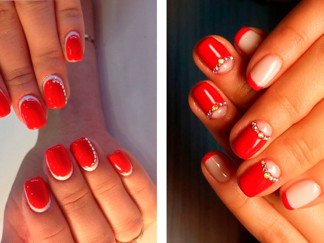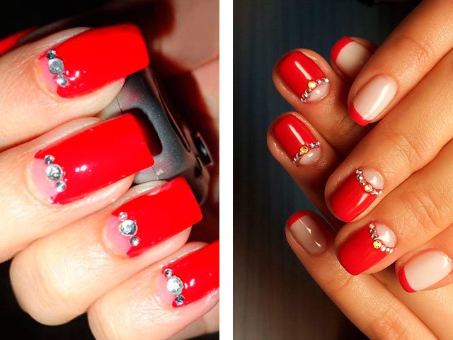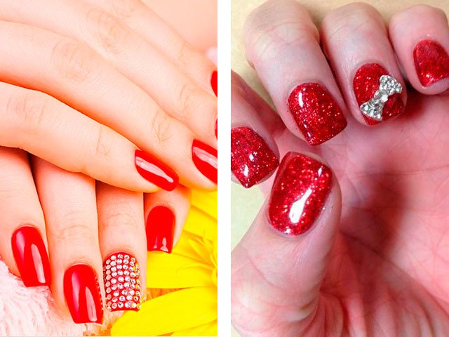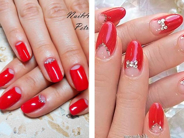 - 2 Idées modernes de manucure rouge avec des strass