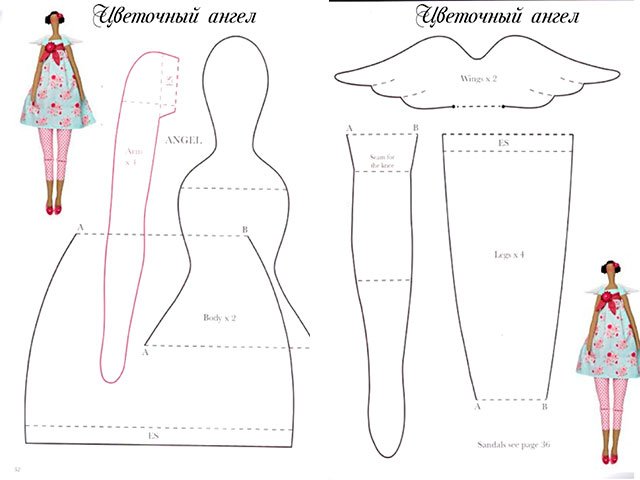 Pour que vos anges puissent avoir des jambes qui peuvent être pliées, commencez par les remplir à moitié, puis tracez la ligne à travers et continuez ensuite à remplir jusqu'au bout.Il est préférable de remplir tous les détails, en vous aidant avec un bâton en bois ou une aiguille à tricoter. Complétez l’image de votre tildeochki avec différents éléments, en lui donnant son individualité et son caractère unique: donnez un cœur, un bouquet de fleurs, un sac à main stylé, un panier ou un livre aux poignées.