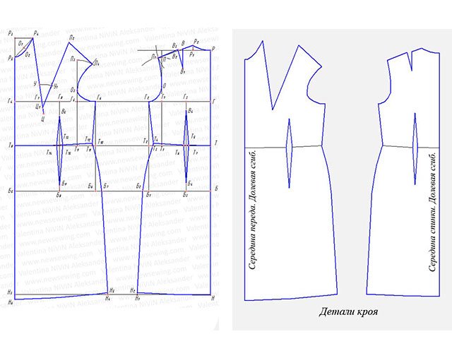 Indemnités: En coupe ample à la mesure de la deuxième demi-circonférence de la poitrine CrII, ajoutez 4-5 cm, à la mesure de la demi-circonférence des hanches Sb - 3 cm et à la mesure de la demi-circonférence de la taille St - 2 cm.