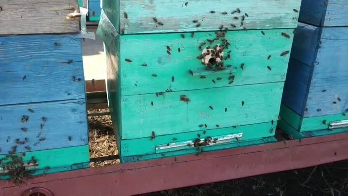Des gouttes de diarrhée observées sur le tableau d'arrivée et sur le mur avant de la ruche indiquent que l'hivernage était médiocre et que l'abeille avait un intestin très complet. Ces familles ont besoin d'aide en premier lieu.
