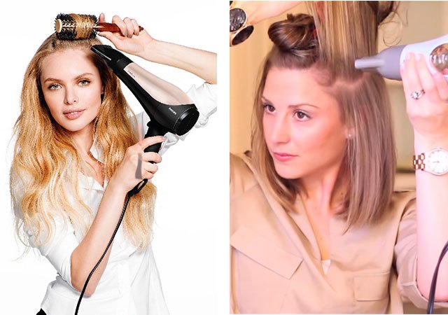 Vous devez d’abord donner du volume à la racine avec un sèche-cheveux et un peigne rond. Et seulement après cela, passez directement au style.