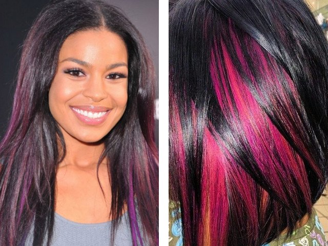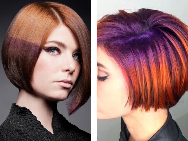 Si vous souhaitez créer un look plus extrême - les cheveux foncés peuvent être combinés avec des fleurs: aubergine, acajou (acajou), violet ou violet.