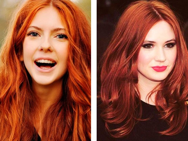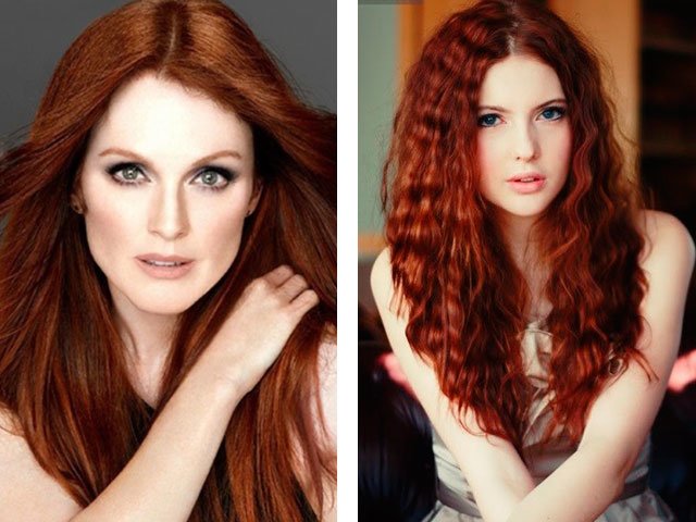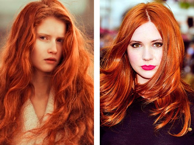 Pour les beautés à la peau sablonneuse, aux lèvres gonflées et aux yeux bleus, le rouge cuivré et le titian conviendront parfaitement. Une pile de cheveux brillants, combinée à des tons doux sur le visage, donnera une image magique et fabuleuse. À propos, il est très facile de peindre les cheveux clairs et foncés dans cette couleur, car ils sont très saturés. Il est possible de conserver une brillance naturelle avec un shampooing et un baume d'ombrage. Après tout, le principal inconvénient du rouge ardent est la perte rapide de couleur dans les boucles au fil du temps.