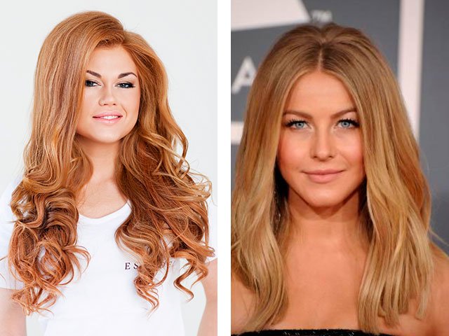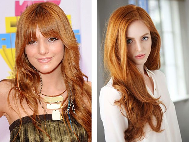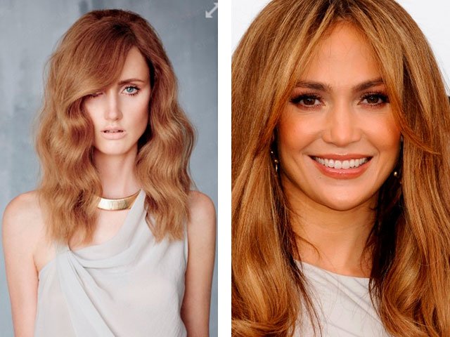 La couleur des cheveux blond cuivré est devenue populaire et est très combinée avec le printemps et l'été. Dans une telle teinte, les filles à la peau de pêche, aux yeux bleu-vert et aux lèvres pâles doivent être peintes. Les propriétaires de porcelaine aux yeux gris et aux boucles chaudes devraient également essayer cette gamme chaude.