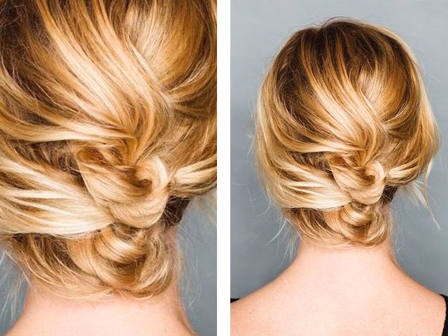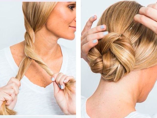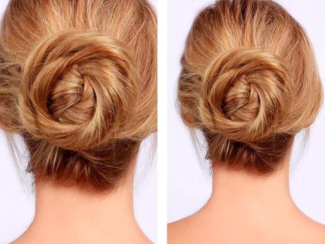 Un nodule élémentaire haut ou bas commence également par une queue haute, dont les extrémités doivent être resserrées, puis prenez le rouleau et fixez le tout de manière invisible. Vous pouvez laisser sortir sur les côtés de grandes mèches. Si vous n’avez pas confiance en vos capacités, cherchez une photo avec une description précise de la mise en œuvre d’une coiffure particulière pour choisir la méthode qui vous convient le mieux.