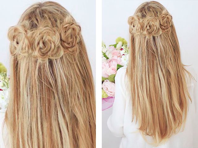 Coiffure en 2 minutes (peut être décoré avec des fleurs et des épingles à cheveux)
