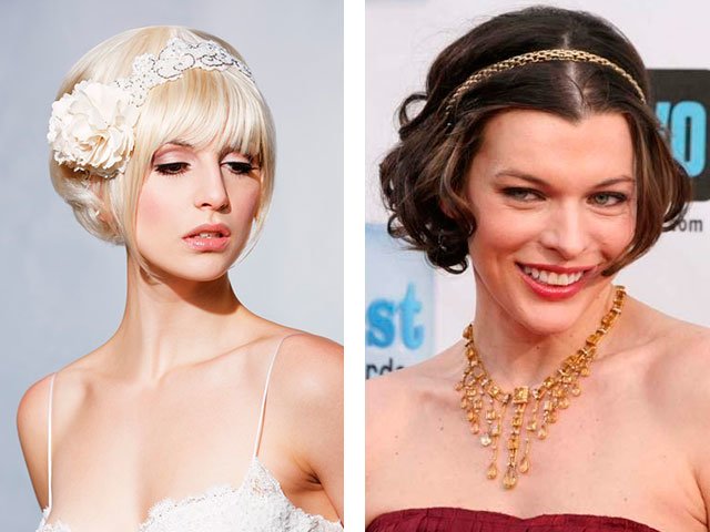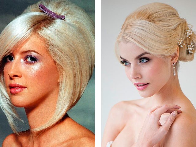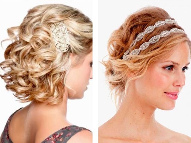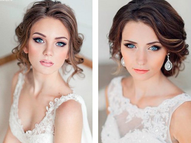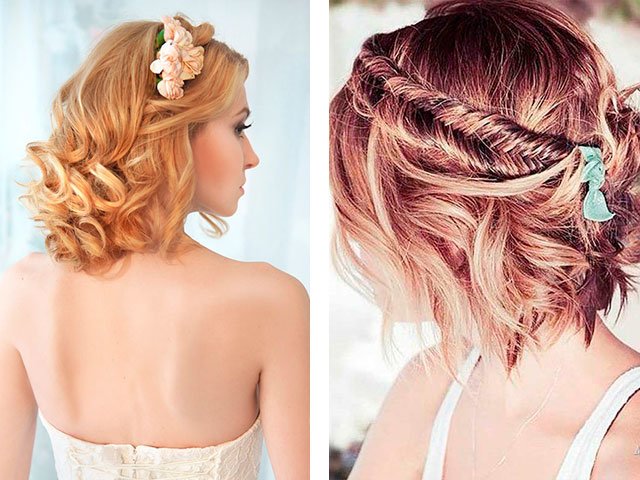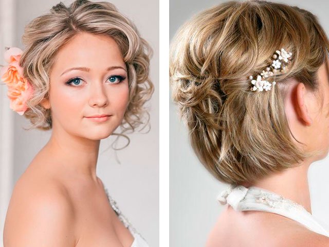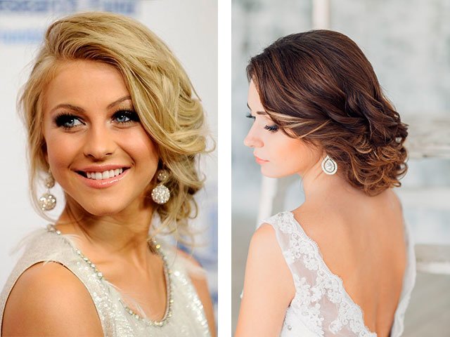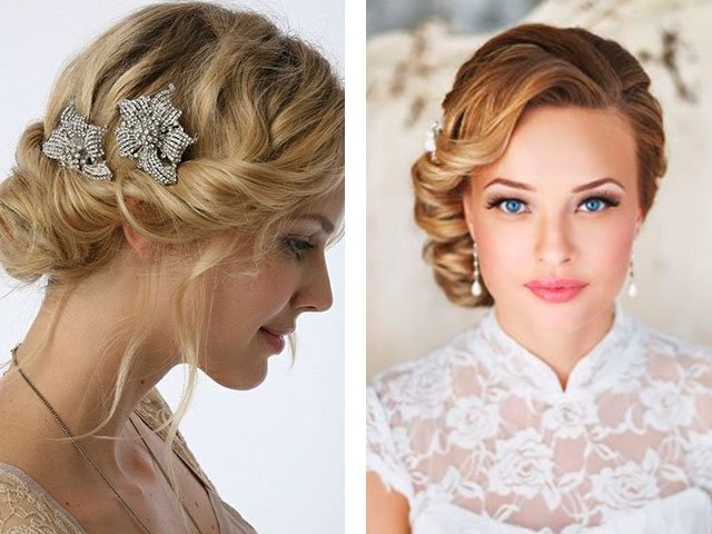 Pour les moyennes longueurs, l'asymétrie, les épingles à cheveux avec des pierres ou des perles, des fleurs ou des rubans peuvent devenir un point culminant et un détail unique. Dans ce cas, essayez de créer des flagelles torsadés autour de la tête avec une frange en biais. En posant des boucles sur le côté, tordez-les progressivement en les fixant avec des épingles à cheveux. Tournez les mèches sur les temples avec un fer à friser. Fixez les brins vers la droite en les tournant du visage vers l’arrière de la tête. Rassemblez tout et fixez solidement.