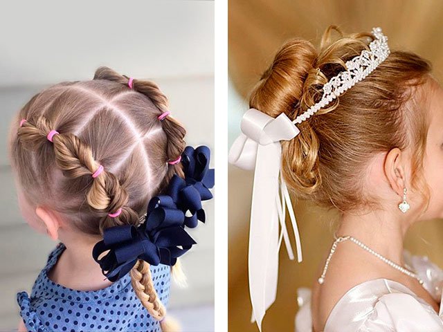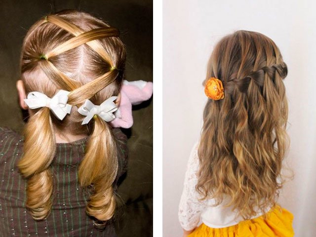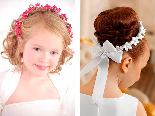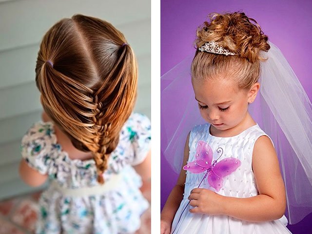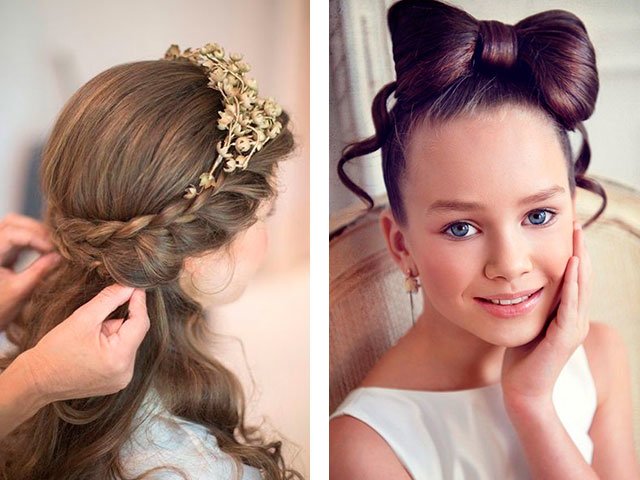 Aujourd’hui, les filles sont à l’école lors d’une fête à l’école, les jeunes filles à la fête de remise des diplômes et les petites filles de la maternelle sont aussi faciles que de décortiquer des poires. Dans le domaine public, il y a beaucoup d'exemples de photos avec les noms et les types de pose sur les cheveux longs, courts et moyens. Boucles d’air, babette vintage, queue haute ou basse, coiffures à pointes, diadème, cheveux lâches, style rétro et grec - tout cela peut être répété chez soi, avec précaution, étape par étape, comme dans la photo.