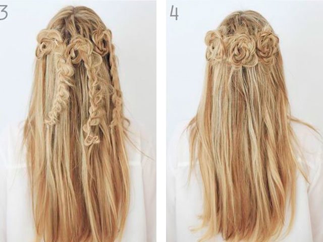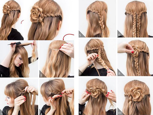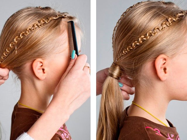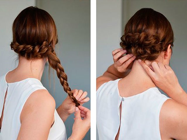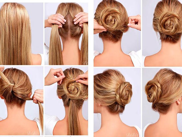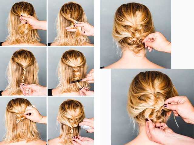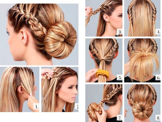 En regardant la photo des coiffures que vous avez fabriquées vous-même, vous comprenez qu’elles peuvent être faites de manière indépendante, l’essentiel est de tout faire par étapes, comme sur la photo.