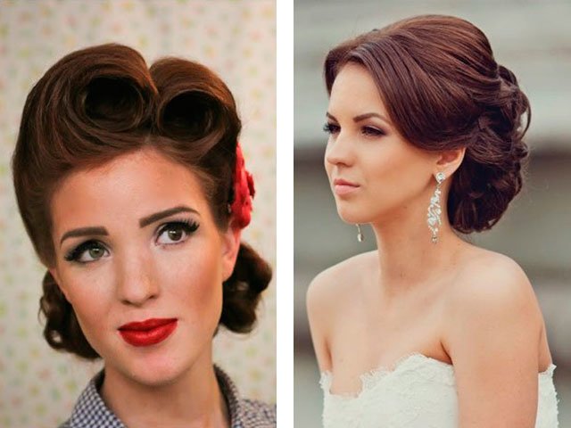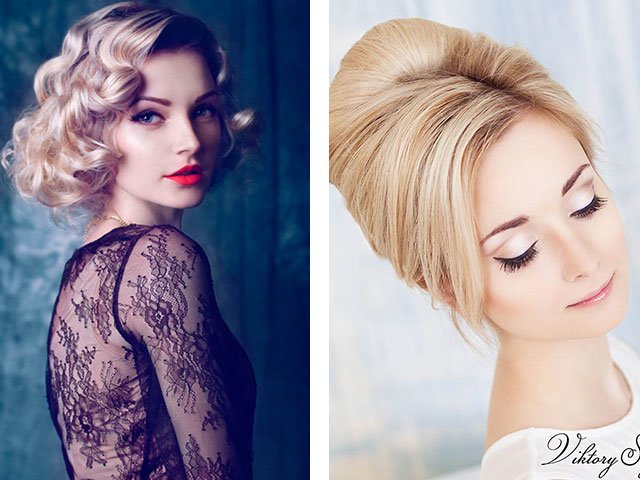 La soirée rétro pour les boucles courtes se fait avec du vernis ordinaire, de la mousse ou de la mousse. Divisez la tête dans un côté de séparation ou au milieu, peignez les cheveux sur le dessus et fixez avec du vernis. Peignez les boucles latérales par les oreilles ou lisse sur les joues, fixant avec du vernis.