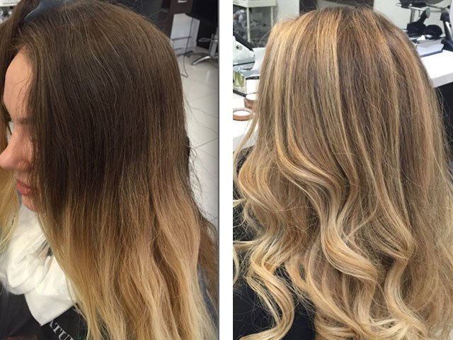 Les cheveux clairs sont faciles, car leur couleur naturelle est à la base de la teinture ultérieure, et pour obtenir l'effet désiré, il suffit simplement d'alléger un peu les cheveux. Mais si vous voulez toujours vous démarquer de la foule, utilisez un colorant pour contraster les boucles individuelles. Une caractéristique de la technique fréquente est que la coloration répétée doit être effectuée une fois par mois, car les racines avec une couleur native seront très visibles sur le fond. Par conséquent, décidez vous-même de ce que vous êtes prêt à affronter après un changement d’image.