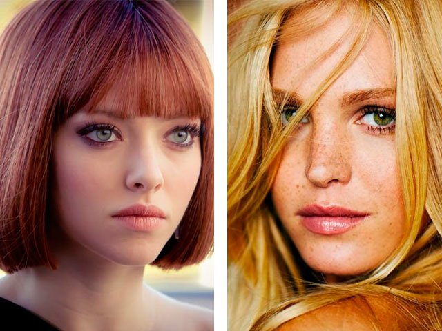 Les stylistes recommandent aux beautés mortelles aux yeux verts de choisir les teintes en fonction de la saturation des yeux selon le principe: Plus le vert des yeux est saturé, plus le ton est lumineux. Teinture capillaire admissible en deux couleurs. Dans le même temps, la liaison à la saison (hiver, été, automne ou printemps) n’est pas requise.