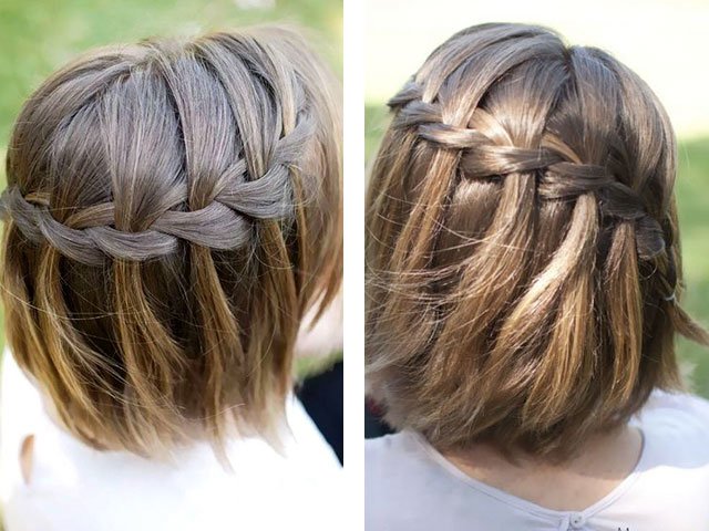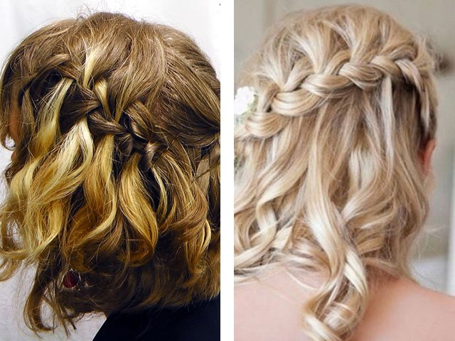 Pour les cheveux courts, la coiffure de la cascade sera belle si vous ajoutez un ruban ou de beaux accessoires au tissage. De plus, dans ce mode de réalisation, il est nécessaire d'utiliser une mousse ou un gel capillaire, sinon la coiffure ne tiendra pas. La photo montre à quel point une coiffure aussi belle et fervente est belle.