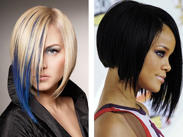 2) Carré asymétrique: séparation oblique différente, et serrures sur le visage, en règle générale, de différentes longueurs. D'une part, ils atteignent le menton et, de l'autre, ils peuvent être raccourcis au lobe de l'oreille. La mode pour cette coupe de cheveux a été introduite par la célèbre fashionista Beckham. Ce type de coiffure ne nécessite pas de style particulier et occupe donc la première place parmi les représentants du sexe faible.