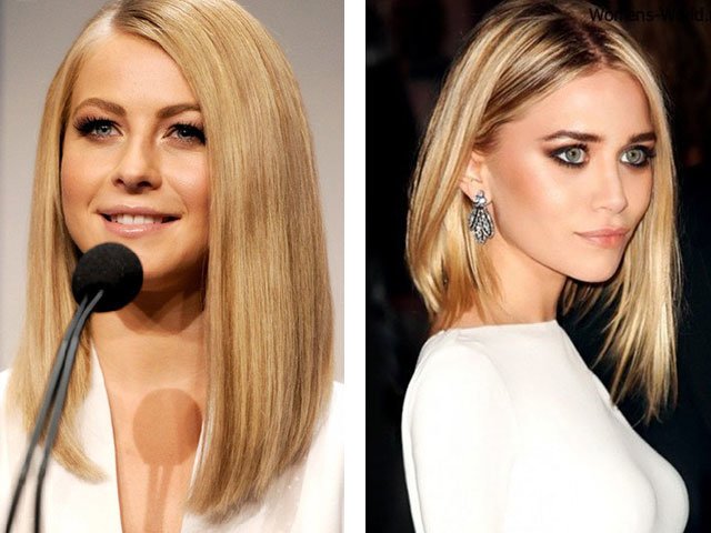 3) Carré allongé sans frange avec peinture dans la technique de "ombree. " Grâce à l'ombre classique, vous pouvez recréer l'effet des cheveux brûlés et d'une légère négligence. Ce style est particulièrement à la mode en 2024, et convient à la fois brune aux cheveux noirs et brûlants et blonde. Cette peinture a l'air très bien chez les filles avec les cheveux de longueur moyenne, en dessous des épaules. Pour les blondes, l'effet des cheveux brûlés est beaucoup plus facile, pour cela, les racines des cheveux doivent être assombries de peinture. Pour les filles aux cheveux noirs, l’effet paraîtra plus vif et les extrémités peuvent être peintes non seulement à la lumière, mais aussi en orange et en rouge. Cette belle coloration est également visible sur la photo de nombreuses stars.
