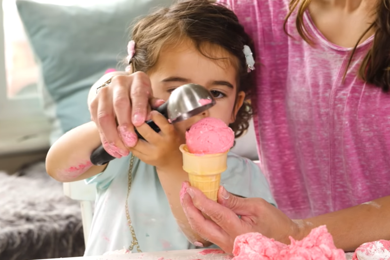 En soi, le jeu «Ice Cream Maker» est axé sur le développement du sensoriel chez les enfants. Et il est réalisé en utilisant de la pâte à la crème glacée. En même temps, les enfants participent à toutes les étapes du jeu.