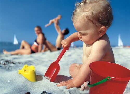 Et rappelez-vous que les meilleures heures pour visiter la plage avec le bébé sont tôt ou tard: jusqu'à 7 heures du matin et après 17 heures le soir.