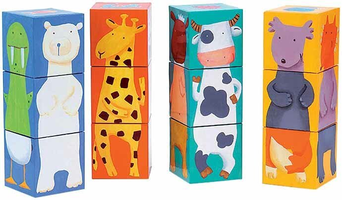 Invitez maintenant le bébé à choisir les cubes les plus appropriés pour collecter les figurines.