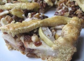 Tarte aux pommes ouverte aux raisins secs et aux noix