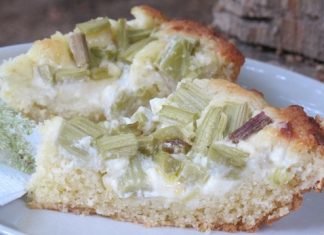 Tarte à la rhubarbe fourrée à la crème sure