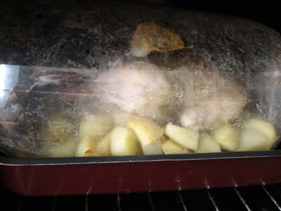 Étape 6 Le poulet savoureux cuit dans une manche avec des pommes de terre est prêt.