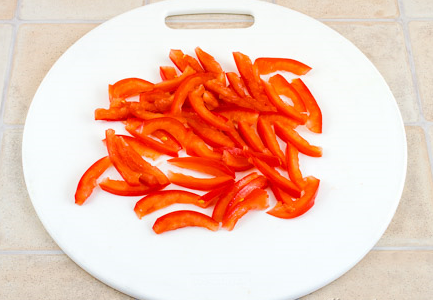 Étape 5 Couper les tomates en tranches, peler les graines et les couper en fines tranches.