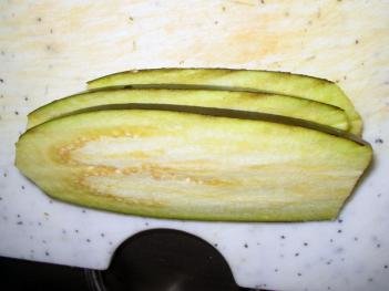 Étape 1 Laver les aubergines et les couper en fines lanières.
